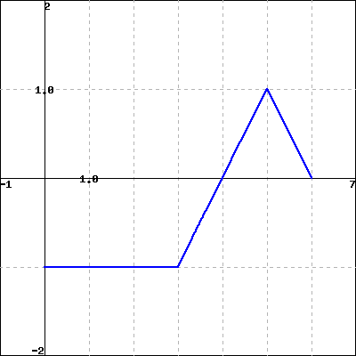 Suppose that the following information is known about a function \(f\text{:}\) the graph of its derivative, \(y = f'(x)\text{,}\) is given in Figure 5.1.1. Further, assume that \(f'\) is piecewise linear (as pictured) and that for \(x \le 0\) and \(x \ge 6\text{,}\)\(f'(x) = 0\text{.}\) Finally, it is given that \(f(0) = 1\text{.}\)